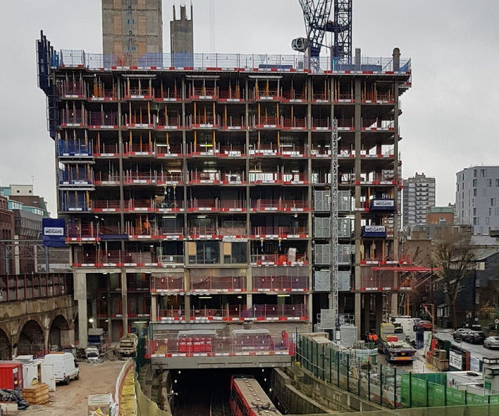 The scheme, currently under construction, is a development over the low level Docklands Light Railway spur which runs to Bank Station. Significant site groundworks have already been completed and the railway line running directly under the site has been encapsulated with a reinforced concrete structure .